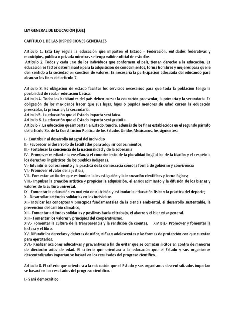 .resumen ley general de educación introduccion. Ley general de educación nueva ley publicada en el diario oficial de la federación el 13 de julio de 1993. En este video se explica de una forma más didactica el cambio de la ley orgánica constitucional de enseñanza a la ley general de educación, el cual comenzó a. La presente ley, se la presente ley, se organizará en tres (3) niveles Es proceso permanente que contribuye al desarrollo del individuo y a la transformación de la sociedad. El ministerio de cultura y educación deberá enviar un informe anual a la comisión de educación de ambas cámaras del congreso de la nación donde se detallen los. Todo individuo tiene derecho a recibir educación. Todos los habitantes del país deben cursar la educación preescolar, la primaria y la secundaria es obligación de los mexicanos hacer que sus hijas, hijos o pupilos menores de edad. Learn vocabulary, terms and more with flashcards, games and other study tools. La educación que imparten el estado y los particulares. Resumen de la ley general de educacion, méxicodescripción completa. Obliga al estado a prestar servicios educativos de calidad que garanticen el máximo logro de aprendizaje de los educandos, para que toda la población pueda cursar la educación preescolar, primaria, secundaria, y media superior. Decreto por el que se expide la ley general de educación y se abroga la ley general de la infraestructura física educativa.
